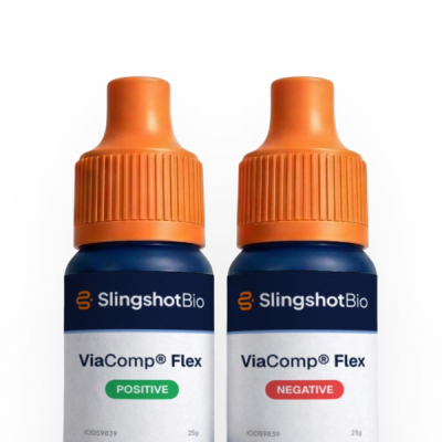 ViaComp® viability controls are advanced 2-in-1 synthetic cell mimics designed to model dead-cell staining behavior in spectral and conventional flow cytometry workflows. They bind both DNA-intercalating dyes and amine-reactive viability dyes to mirror real cell behavior.